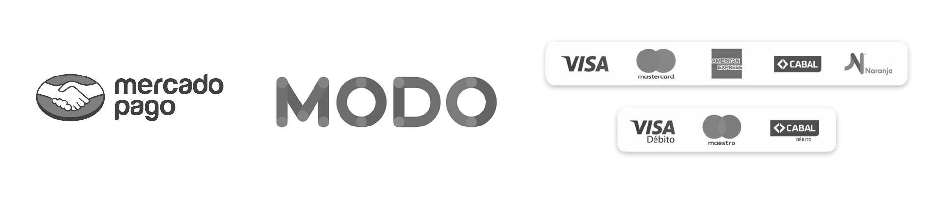 - ACEPTAMOS TODAS LAS TARJETAS DE DÉBITO, CRÉDITO, MERCADO PAGO Y BILLETERAS VIRTUALES.